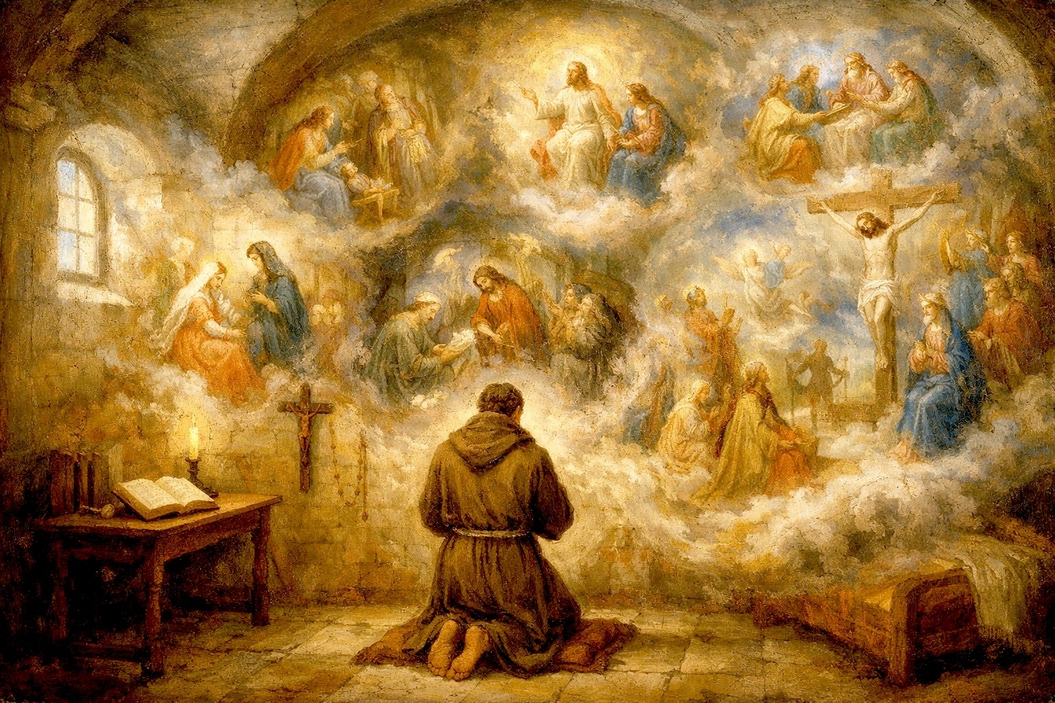 Within Catholic devotional life, the Oratio Rosarii serves as a theological summary of the Rosary itself, articulating its purpose in concise form. By explicitly linking meditation to imitation and promise to fulfillment, it underscores why the Rosary has endured as a formative practice for Christian prayer, reflection, and moral orientation across centuries.