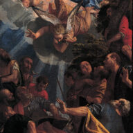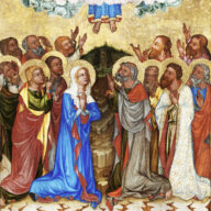 We contemplate Jesus ascending into heaven before the eyes of His disciples. He blesses them and is taken up, promising the coming of the Spirit. The cloud receives Him, and the apostles stand gazing upward.