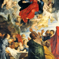 We contemplate the Blessed Virgin, at the end of her earthly life, taken body and soul into heaven. No corruption touches her; she is raised to the glory promised to all who persevere in grace. The angels rejoice to receive their Queen.